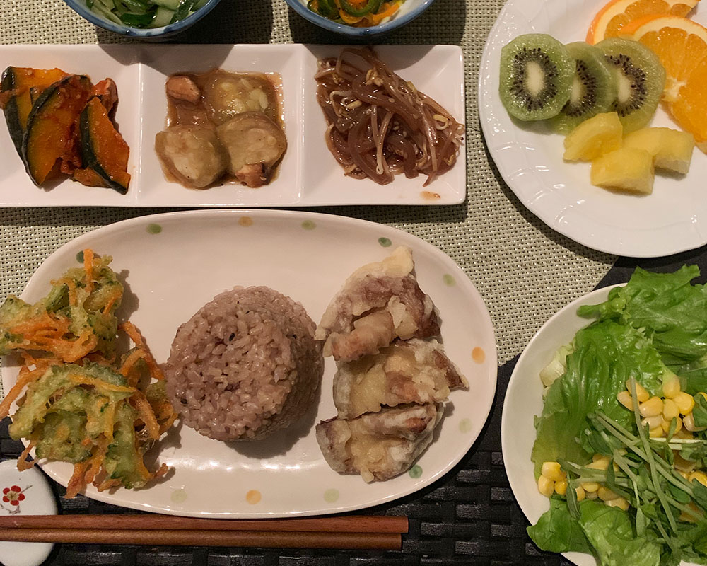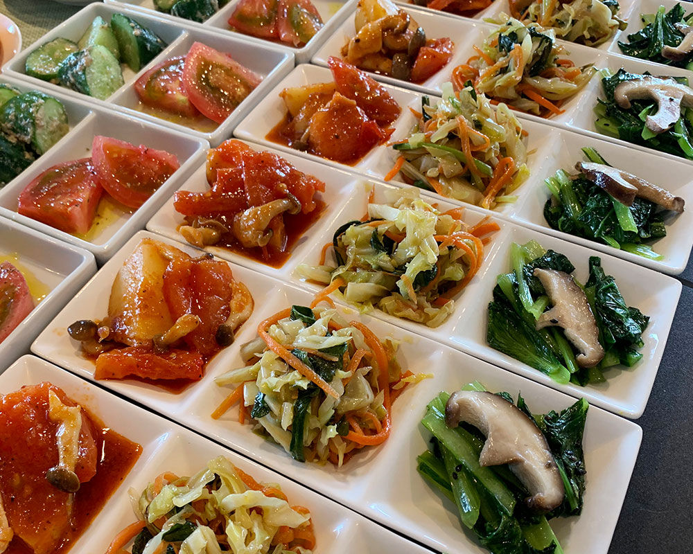 ディナータイムは完全予約制のコース料理。 素敵な夕景・夜景を眺めながら野菜メインのコース料理(和食コースor洋食コース)が楽しめます。 食育インストラクターの資格をもつオーナーシェフが腕をふるいます。 体にやさしく、お腹も満足できるディナーで心地よい時間をお過ごしください。 アレルギー・ビーガン・五葷抜きにも対応しています。