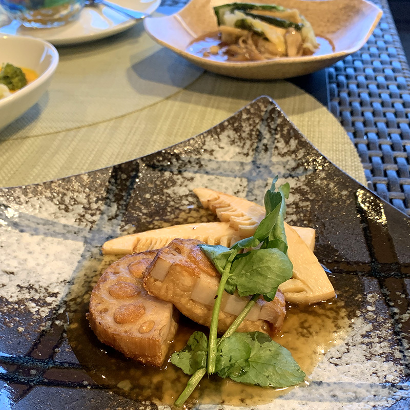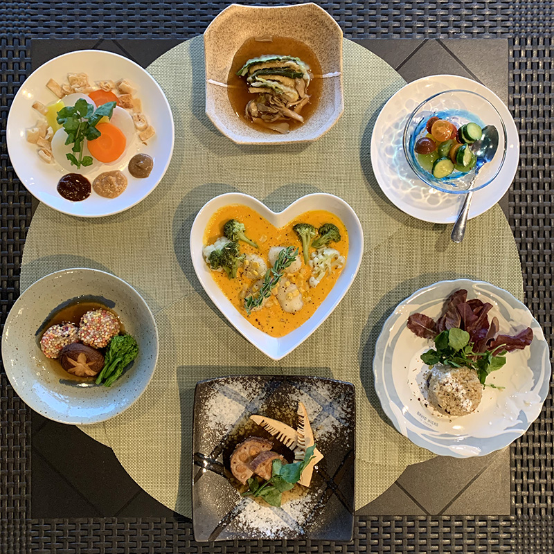 料理は食育インストラクターが、体にやさしい野菜料理でおもてなし。